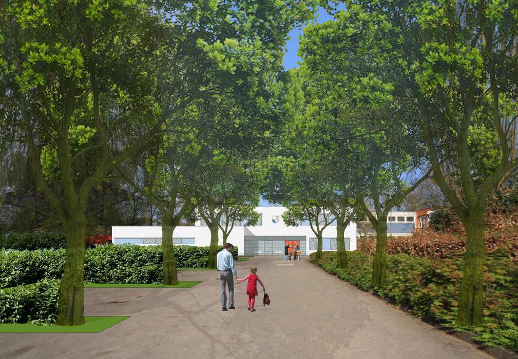 Die im Jahr 1963 erbaute katholische Grundschule besticht durch ihre klare Gliederung. Die Schule sollte auf den dreizügigen Ganztagsbetrieb umgerüstet und erweitert werden.