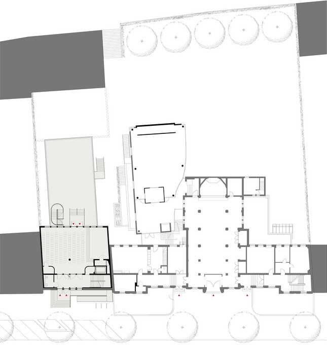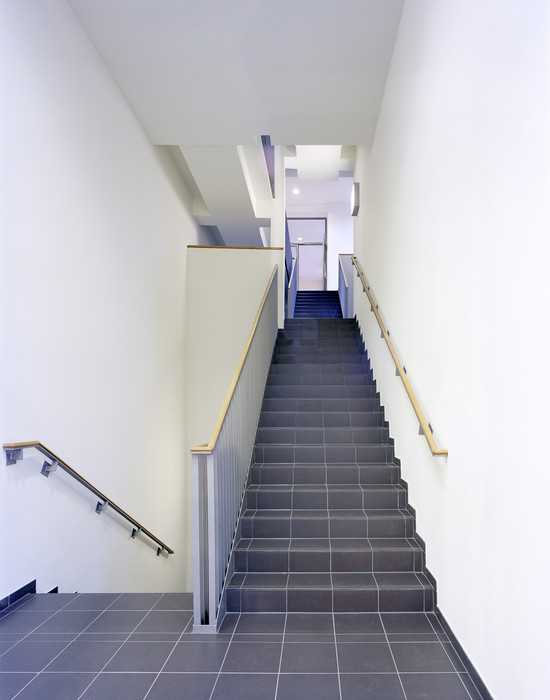 Der Anschluss an den Altbau erfolgt über ein neugestaltetes Treppenhaus.