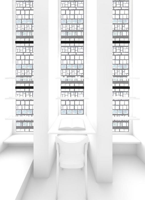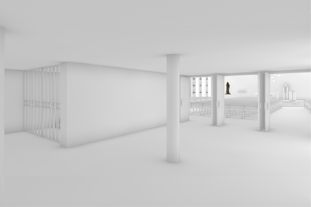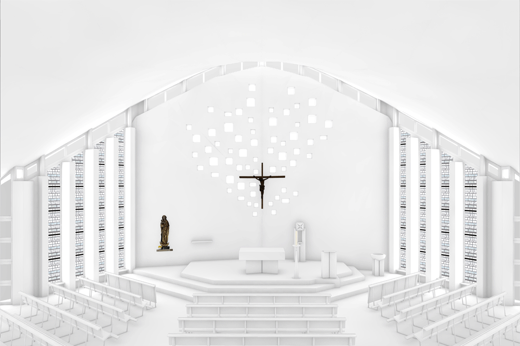 Ebenfalls wurden verschiedene Orte für die Trauerpastoral untersucht, wobei eine Unterbringung in Zusammenhang mit der Dalleverglasung nahe dem Altar bevorzugt wurde. Hierbei wurden auch verschiedene alternative Aufstellungen der Prinzipalstücke erörtert. Durch die Nähe der Trauerpastoral zur Marienstatue sowie zum Taufort wird das ganze Christenleben an diesem Ort zusammengefasst. Der Schein der Opferkerzen wäre durch die Verglasung auch von außen wahrnehmbar.
