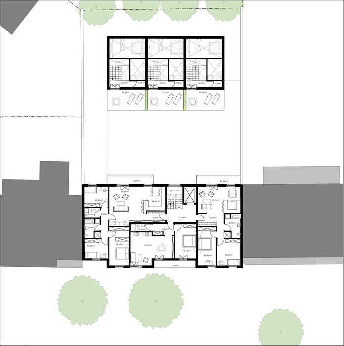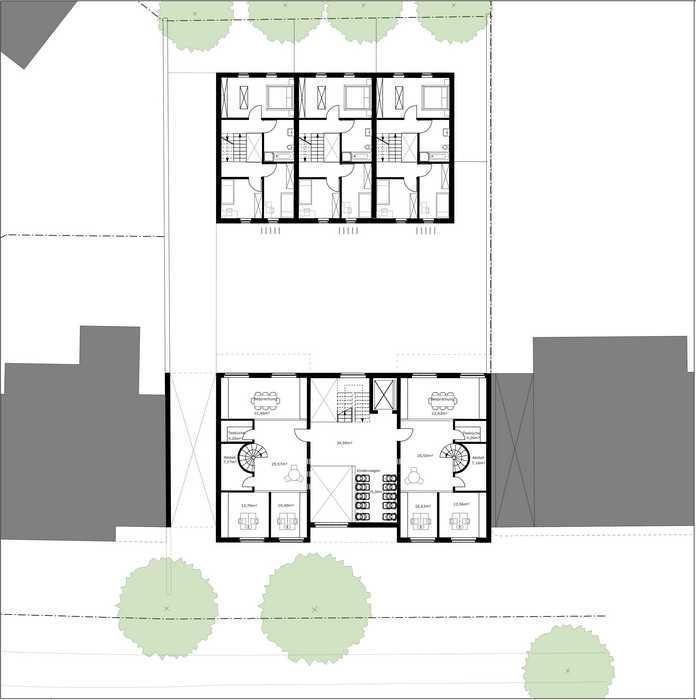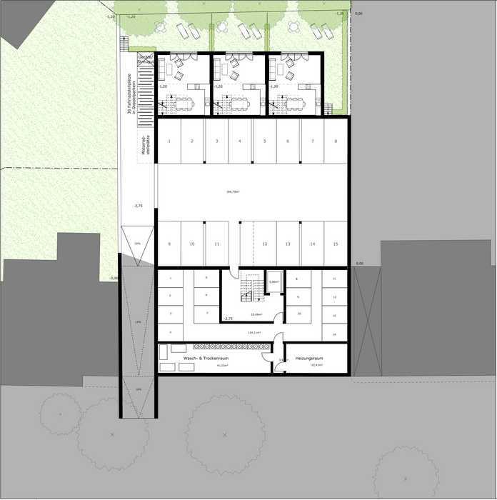 Das Ensemble erhält eine Tiefgarage mit 15 Stellplätzen.